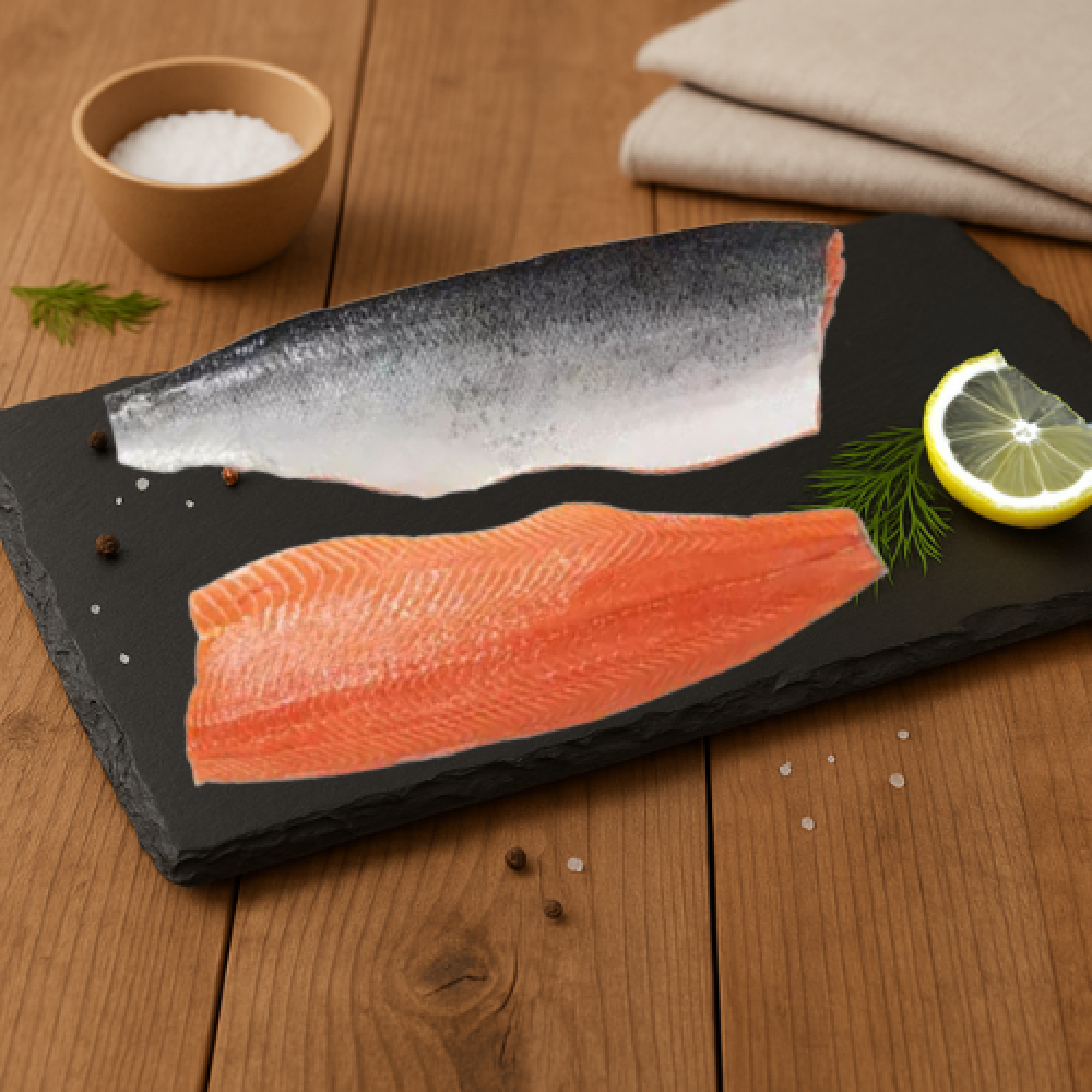 - الاسم: سلمون فيليه فاخر (مجمد مع الجلد).